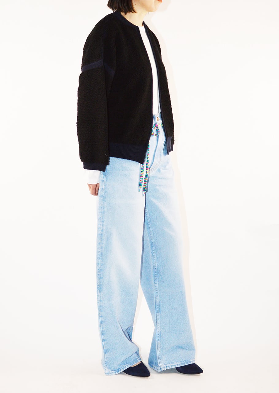 バイカラーシリーズのカーディガン。やや厚手のニットを使用することで独自の存在感があります。着丈はやや短め、コンパクトなサイズ感にほどよいゆとりをもたせつつも落ち感のあるシルエット。ジャケットのような雰囲気を演出します。