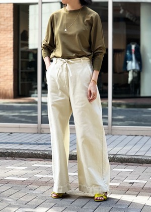 ドルマンスリーブのクルーネックニット。伸縮性と軽さ、型崩れしにくくホームケアできることにこだわってつくられたウールジャー素材。スーパー120’ウール糸ならではの、上品な光沢と滑らかさ、ドライな手触りを感じてもらえる一着に。季節の変わり目のスウィッチアイテムとしても活躍してくれます。