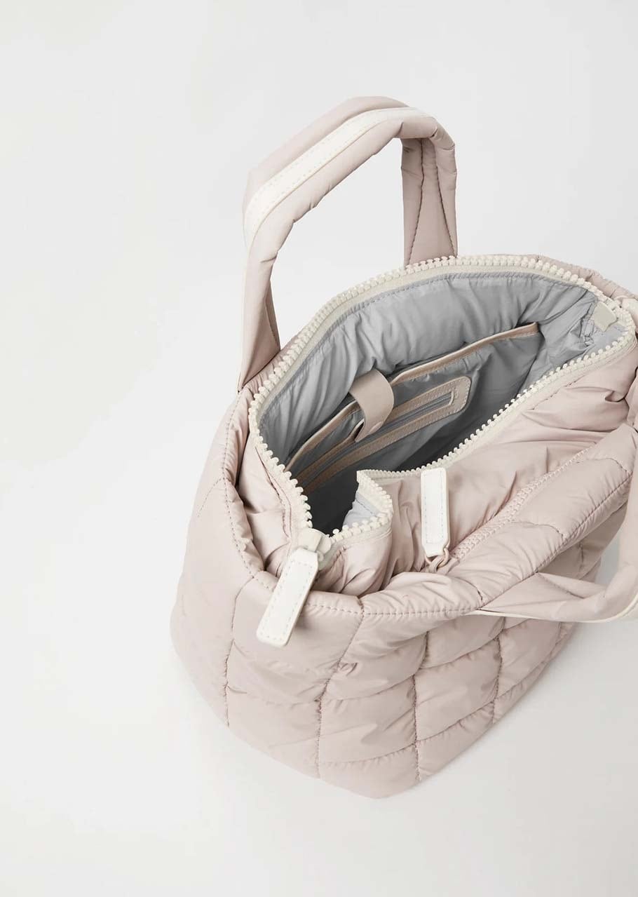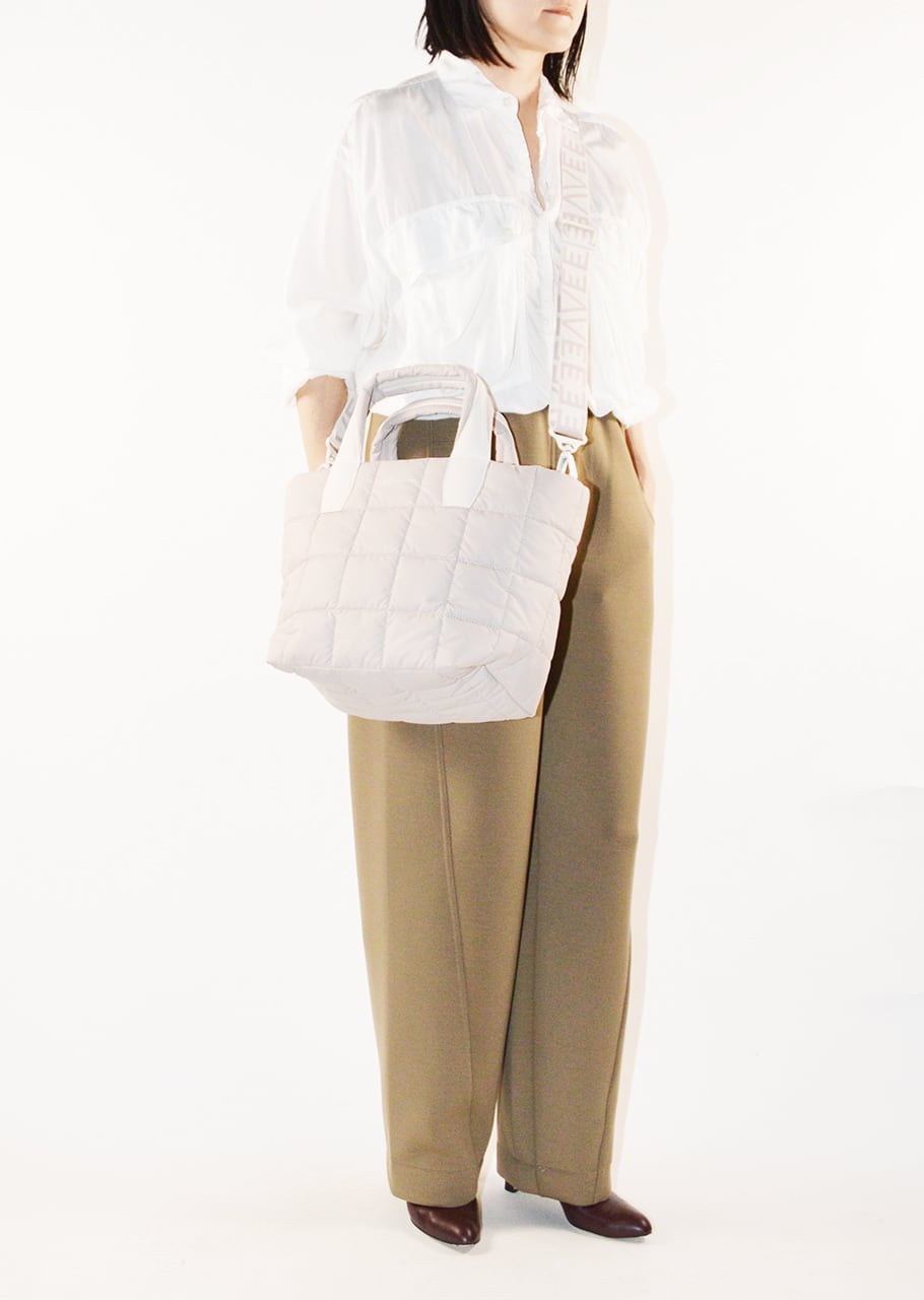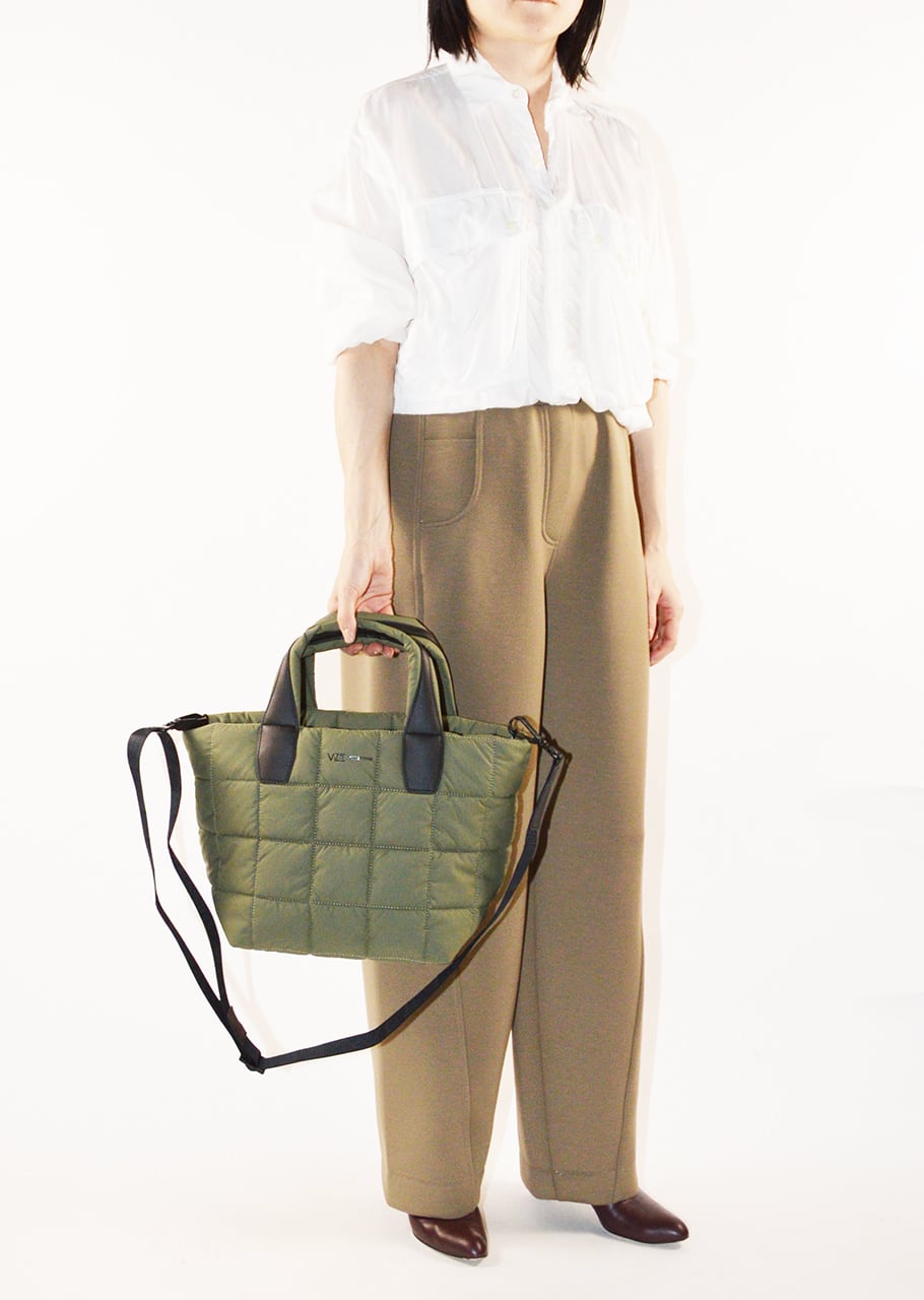 ショルダーストラップのついたスモールサイズのトートバッグ。体に馴染む柔らかな素材感とステッチワークの効いたユニークなデザインです。トップはジッパーで開閉可能、中には大きめのジッパー付きポケットがセットされており、使い勝手も抜群です。