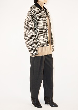 クラシックなグレンチェックをモダンに表現したジャケット。ゆったりとしたオーバーサイズシルエットでリラックスした着心地が魅力です。袖と襟のリブがスポーティーなアクセントですが、大人っぽく着こなせる。
