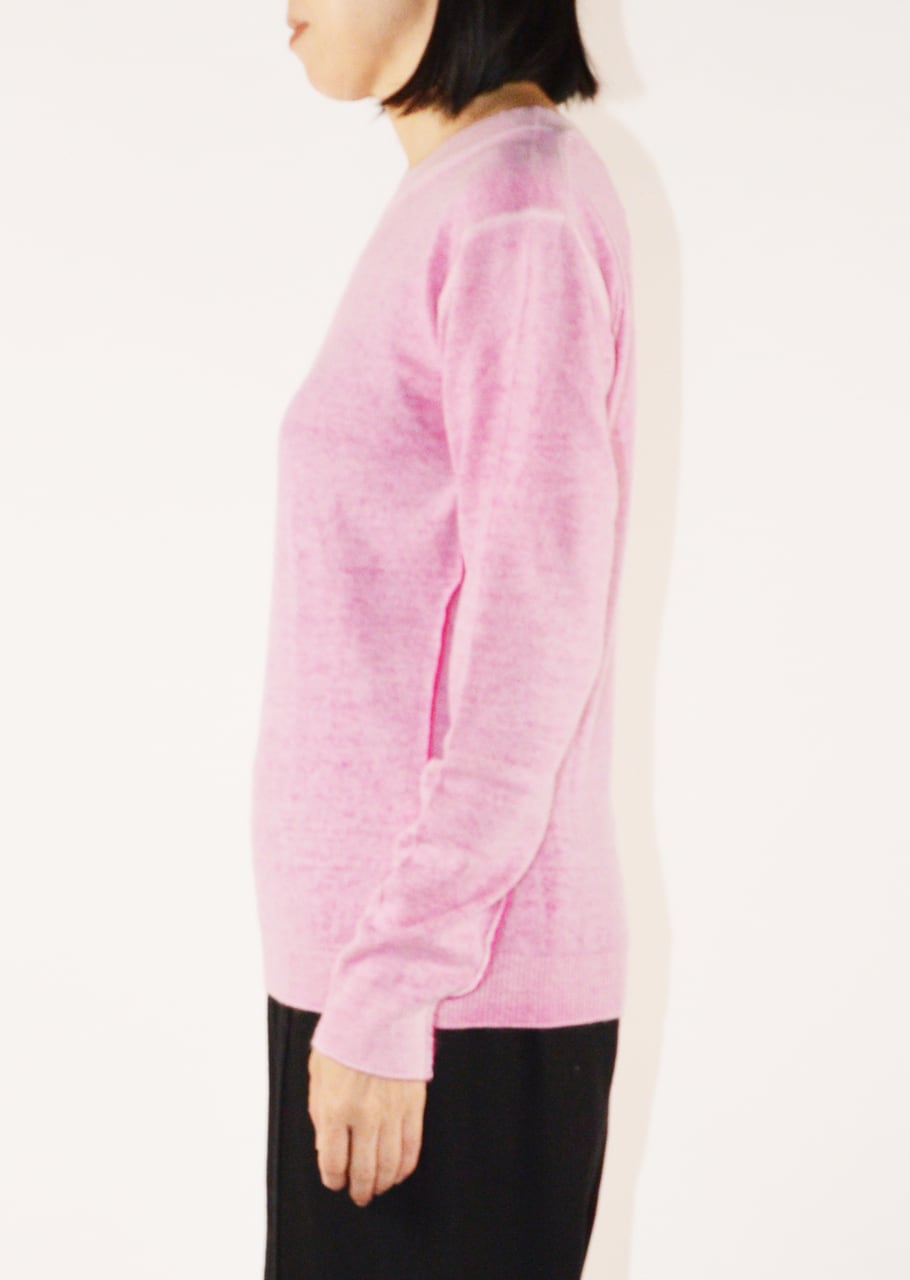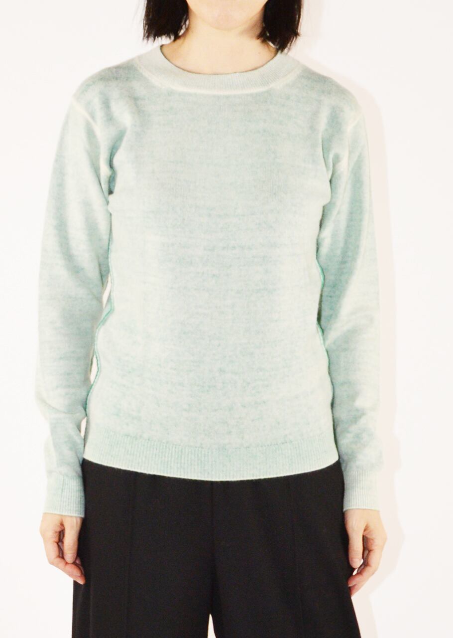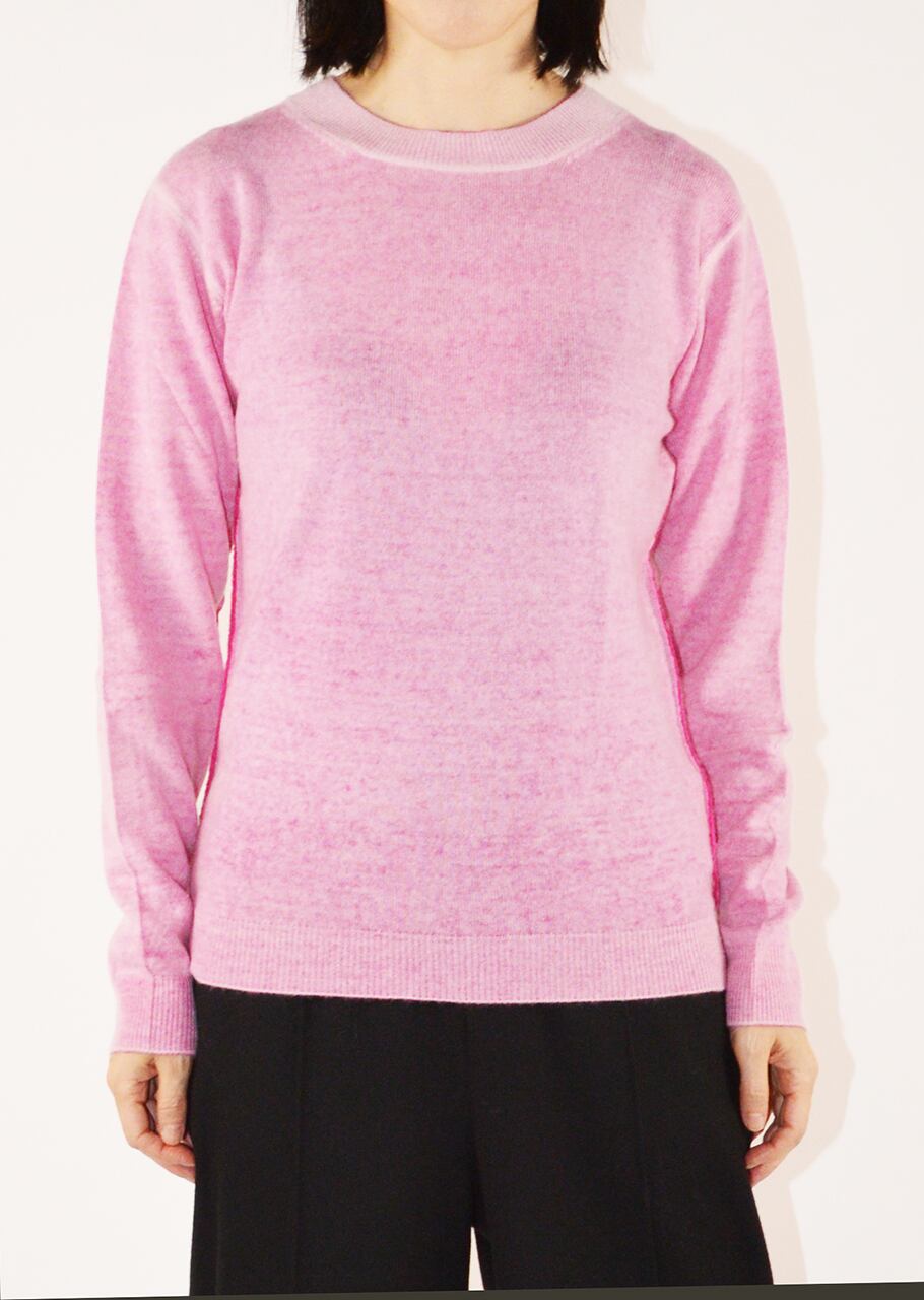美しいカラーと後染めの味わいが目をひくリバーシブルニット。最高級のウールカシミヤは軽く滑らかな肌触りです。ダメージテイストにする為の後染めは1点1点染色する為、高度の技術と手間が必要。表裏2回染色を行うという手間と高度な染色技術により1枚で2色楽しめるアイテムです。