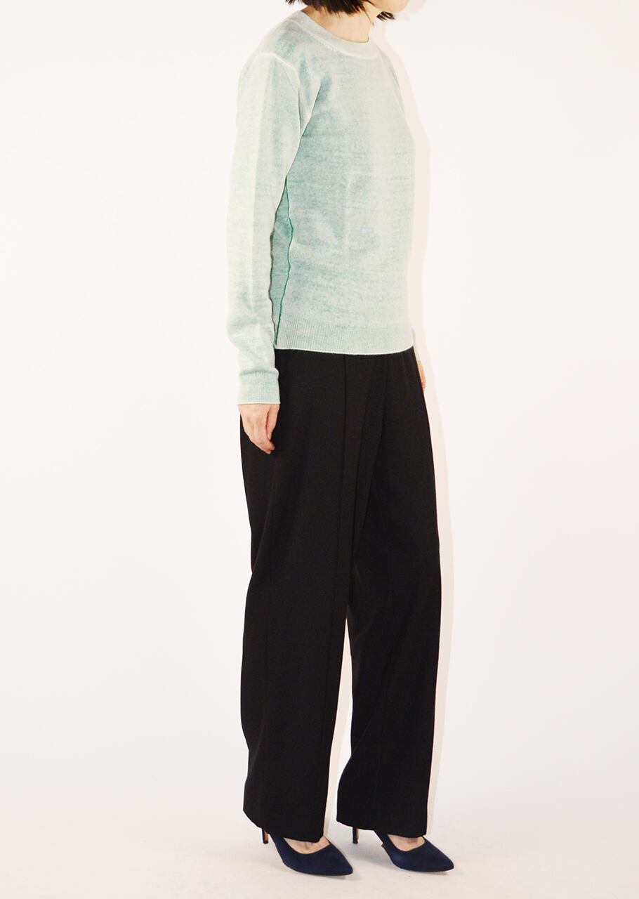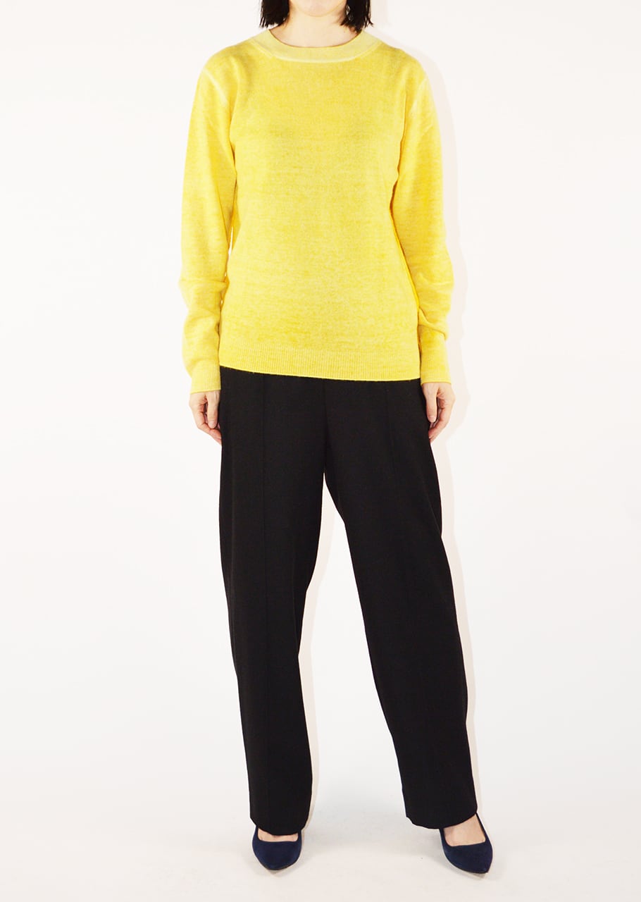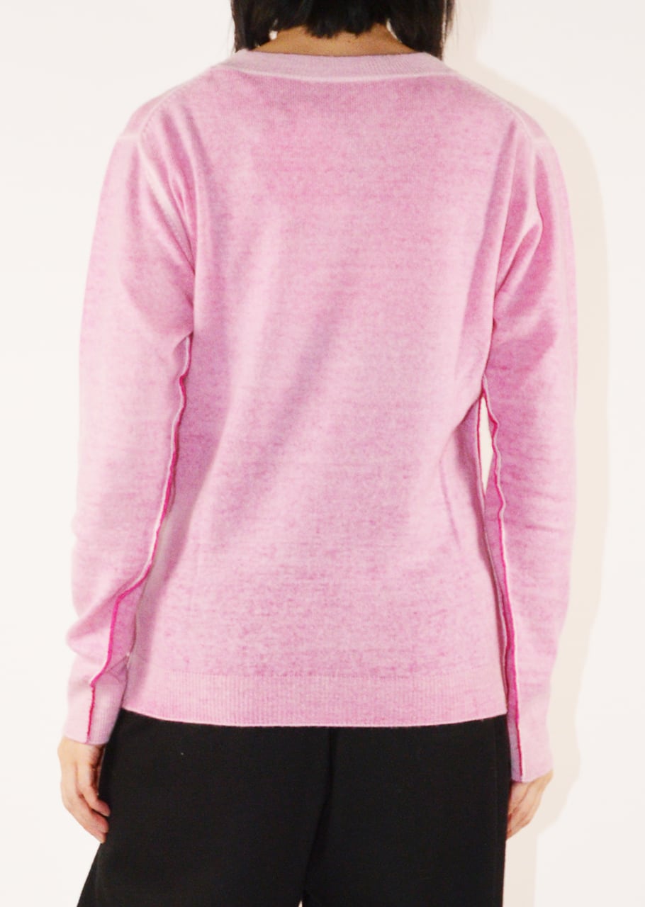 美しいカラーと後染めの味わいが目をひくリバーシブルニット。最高級のウールカシミヤは軽く滑らかな肌触りです。ダメージテイストにする為の後染めは1点1点染色する為、高度の技術と手間が必要。表裏2回染色を行うという手間と高度な染色技術により1枚で2色楽しめるアイテムです。