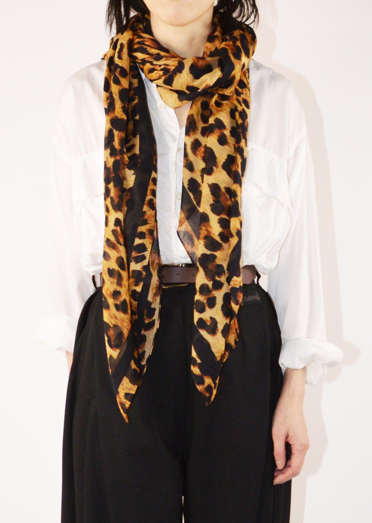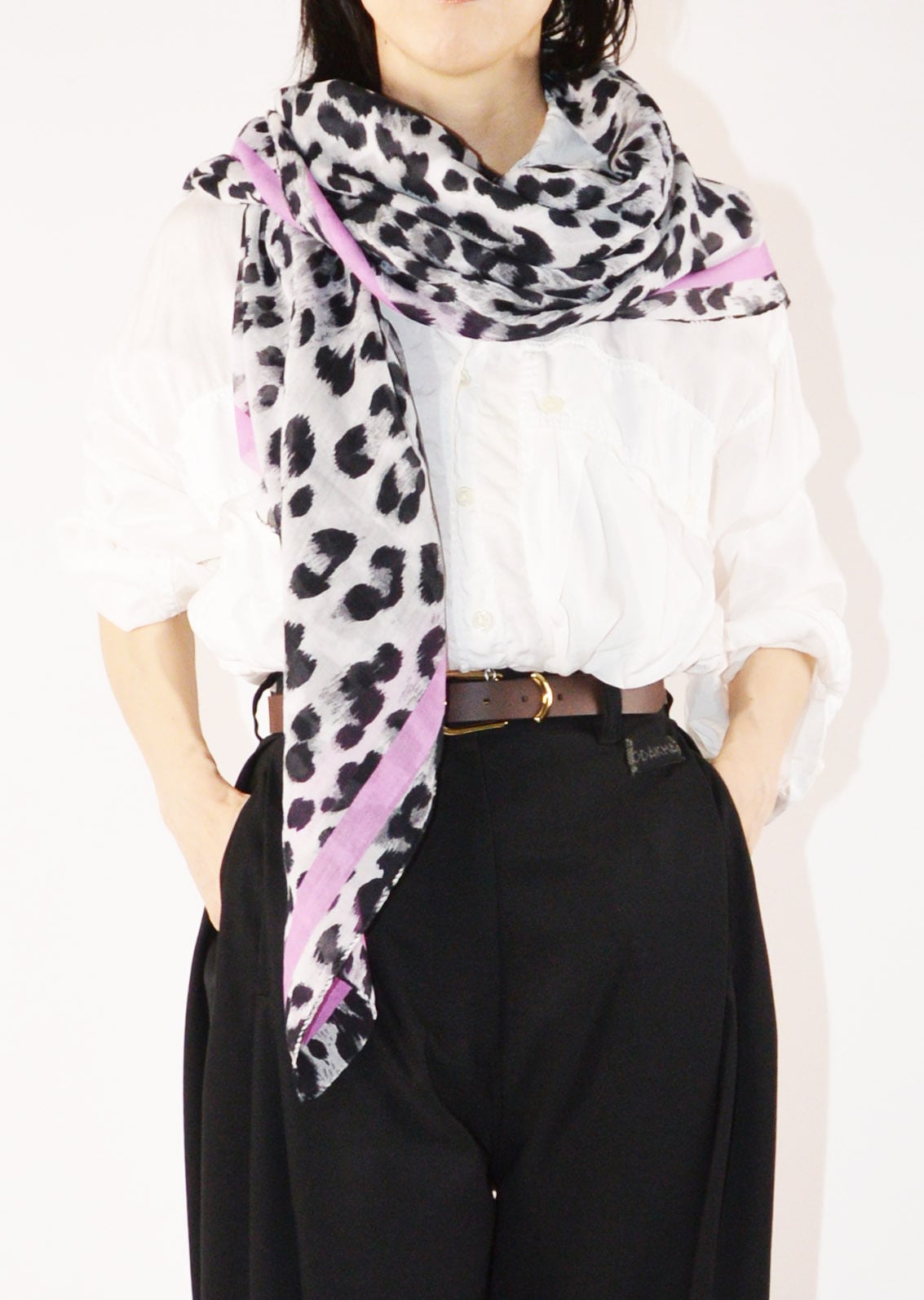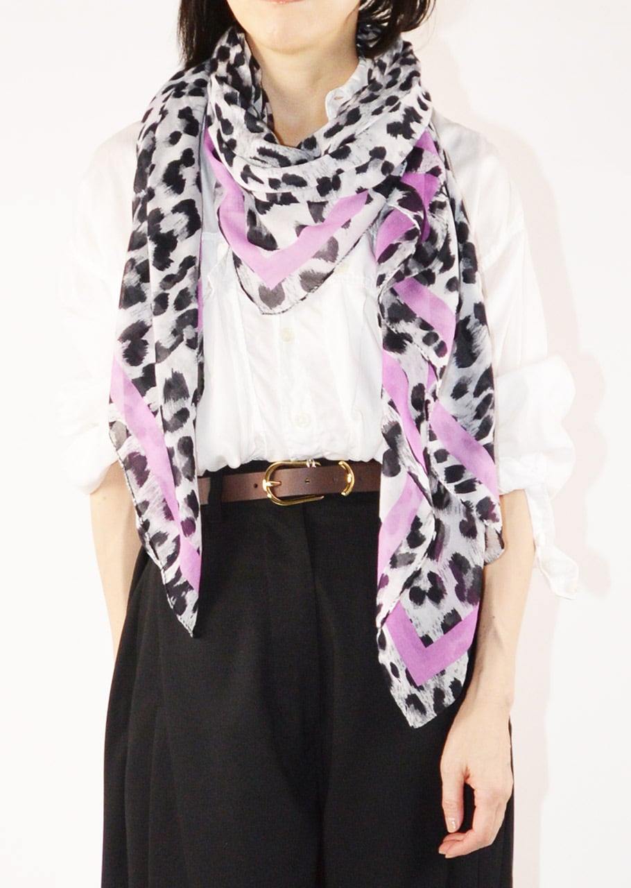 100%コットン素材の柔らかさの中に適度にハリのあるストール。薄手で巻いた時のボリューム感が程よいデザインです。125cm×125cmの首元で巻いてもまた軽く結んで使ってもおさまりの良いサイズ感。ロングシーズン楽しめるサイズと質感も魅力です。