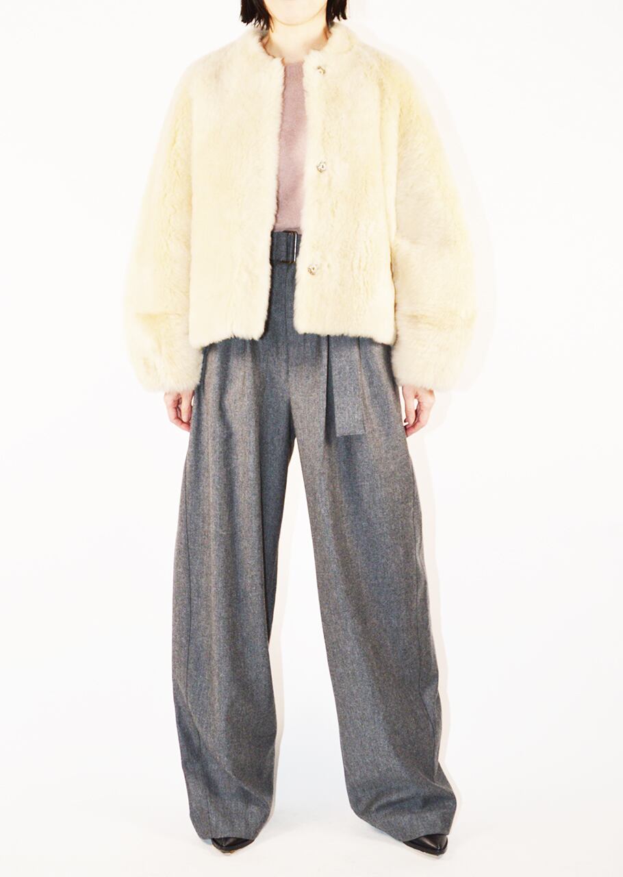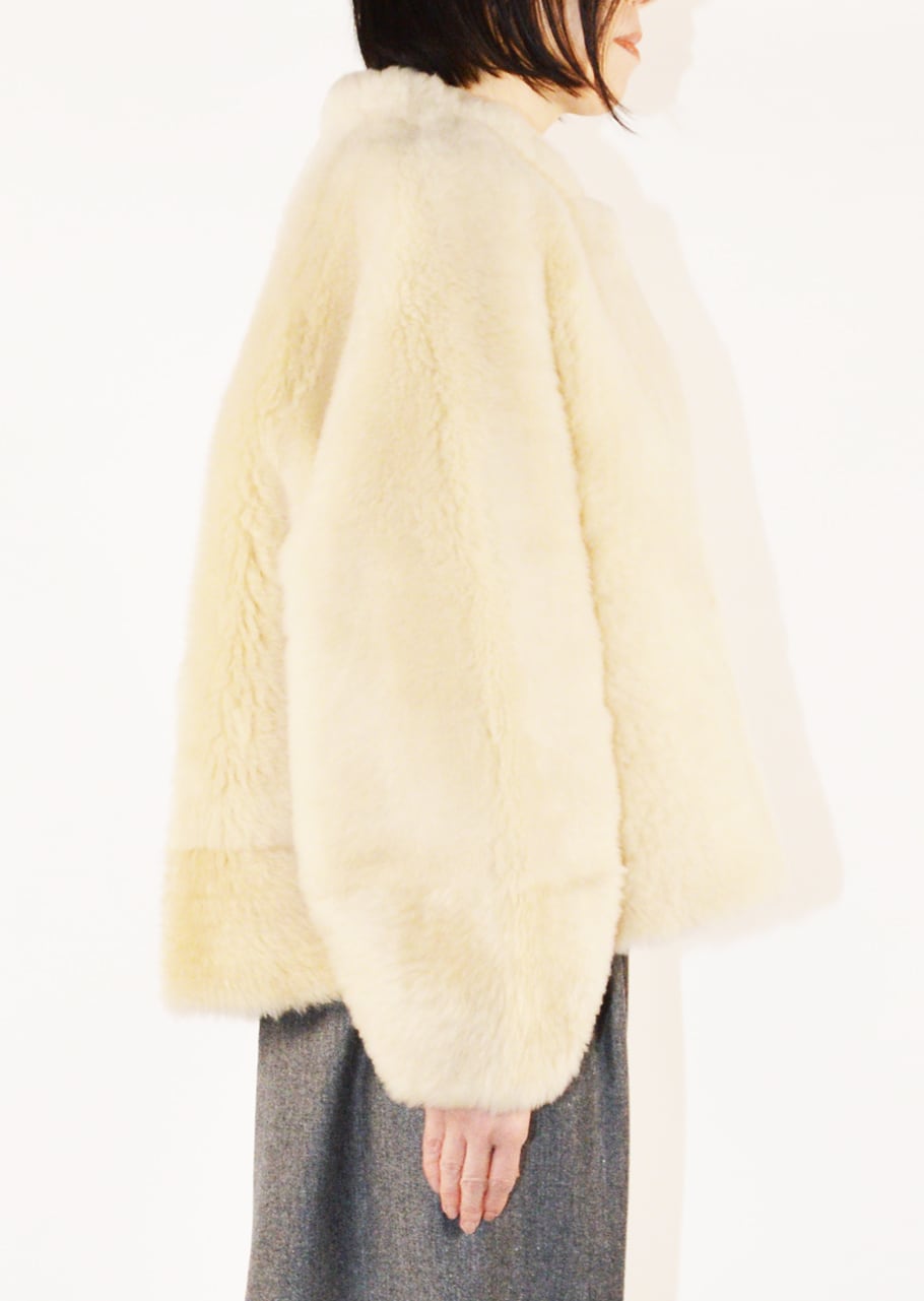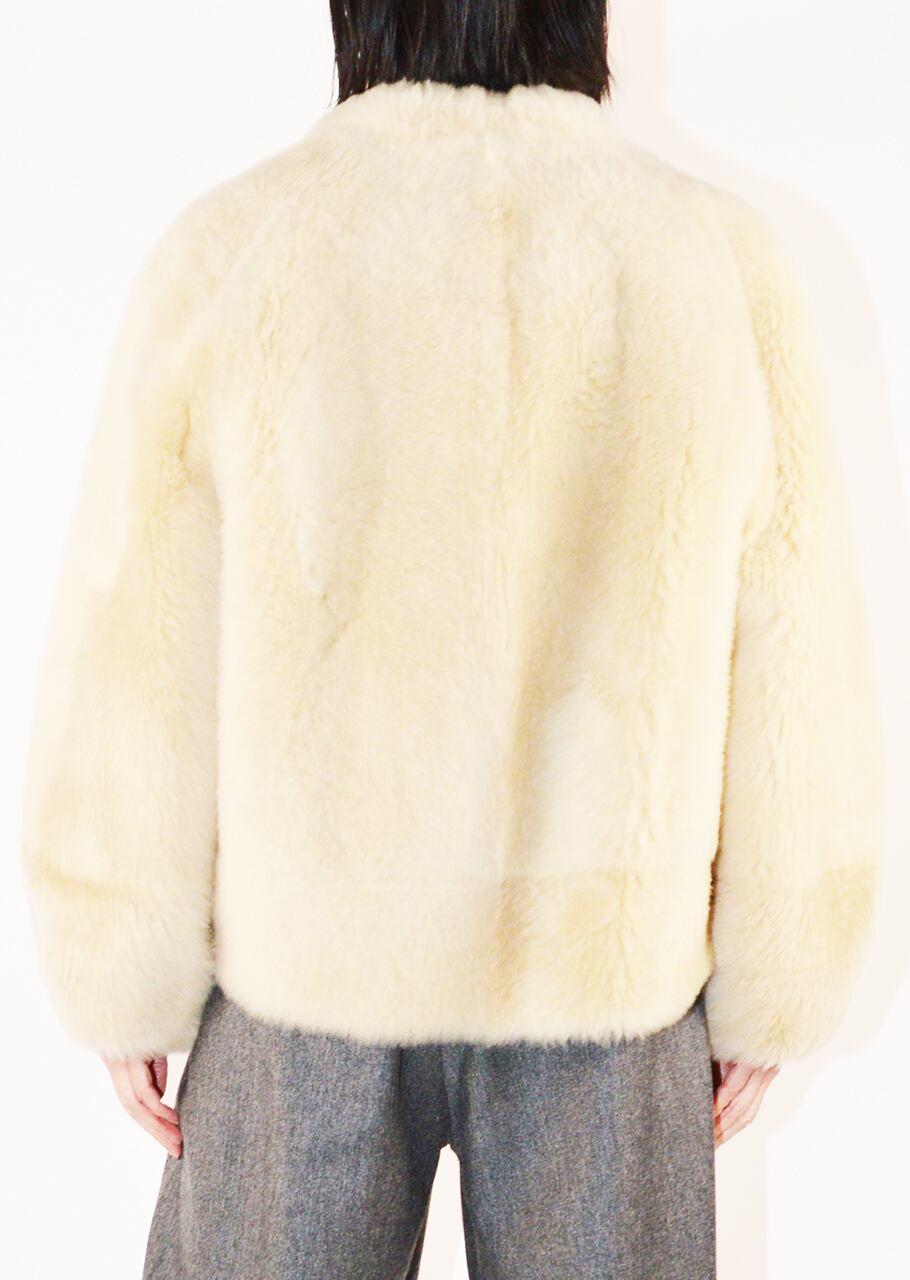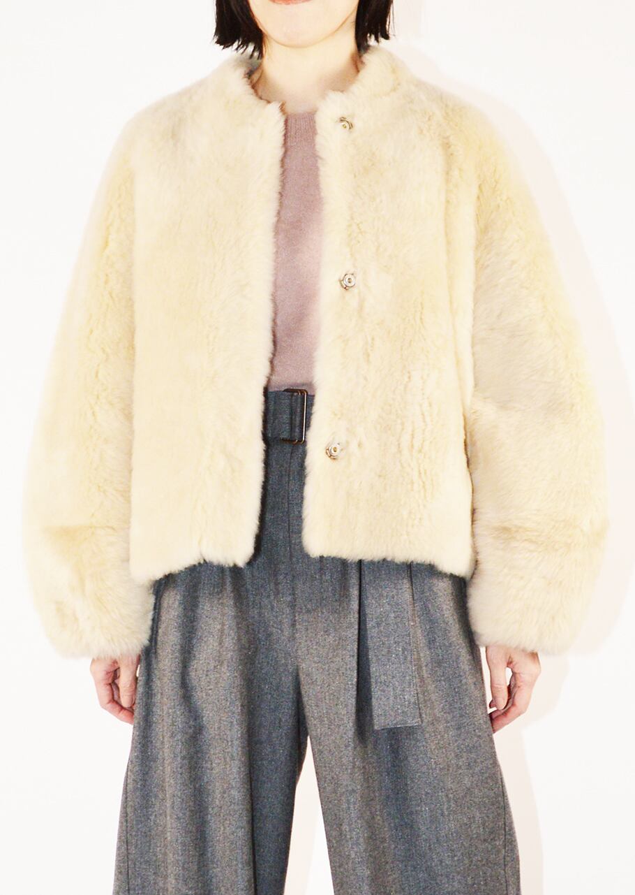 上質なムートンで仕上げたムートンジャケット。シックで華やかな落ち着いたオフホワイトはウィンターシーズンの着こなしを明るく演出、今シーズンならではのスタイリングに活躍します。ほどよい抜け感を楽しんで。