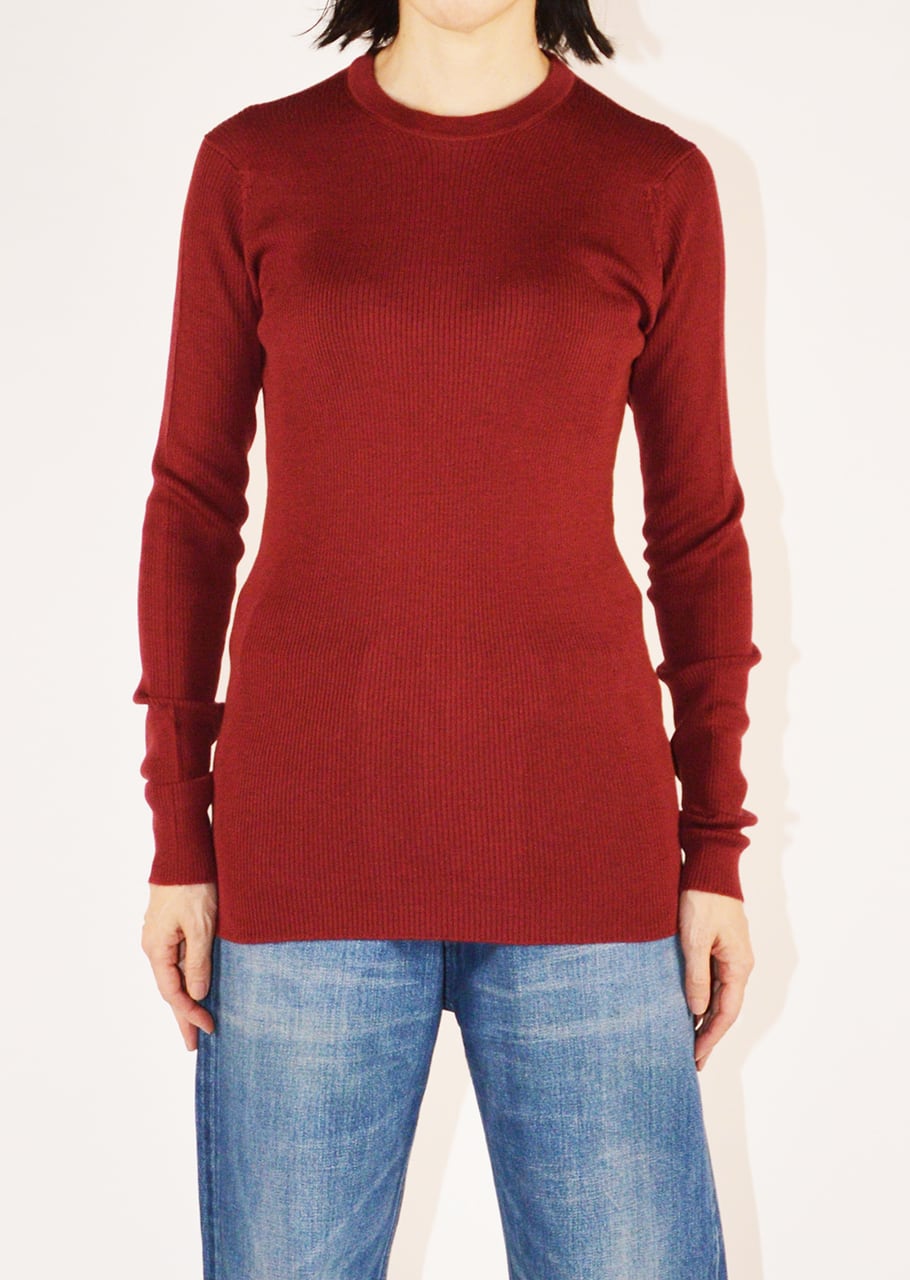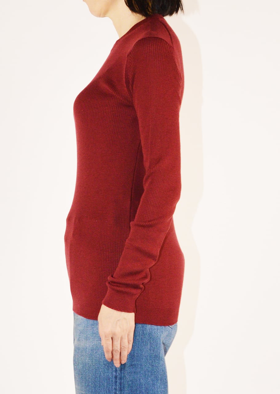 エクストラファインメリノウール100%のリブコレクション。細めのリブ編みとなっているのでスポーティなアイテムのリブニットも女性らしい印象に。身体を優しく包み込むようなソフトなリブで、一枚で着てもインナーとしても着やすくなっています。コンパクトなフォルムを生かして、ボリュームのあるボトムとスタイリングするのがおすすめです。
