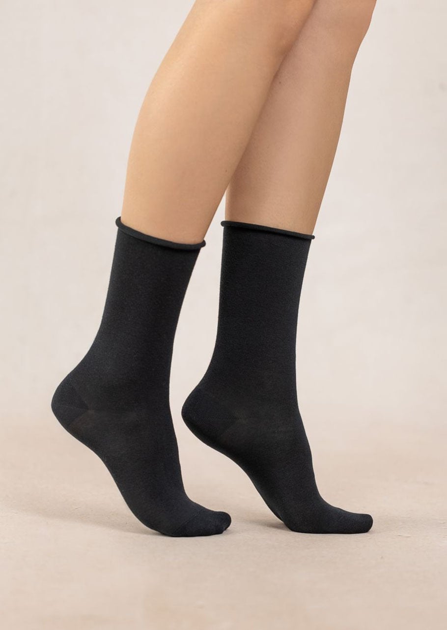 ブランドの代表的なアイテムで、その快適さとスタイルが魅力。高品質の綿で編んだベルベットのようなショートソックスは、綿97%を使用した柔らかなはき心地を実現。ワインレッドかチャコールグレー、着こなしに合わせてチョイスしてみては。