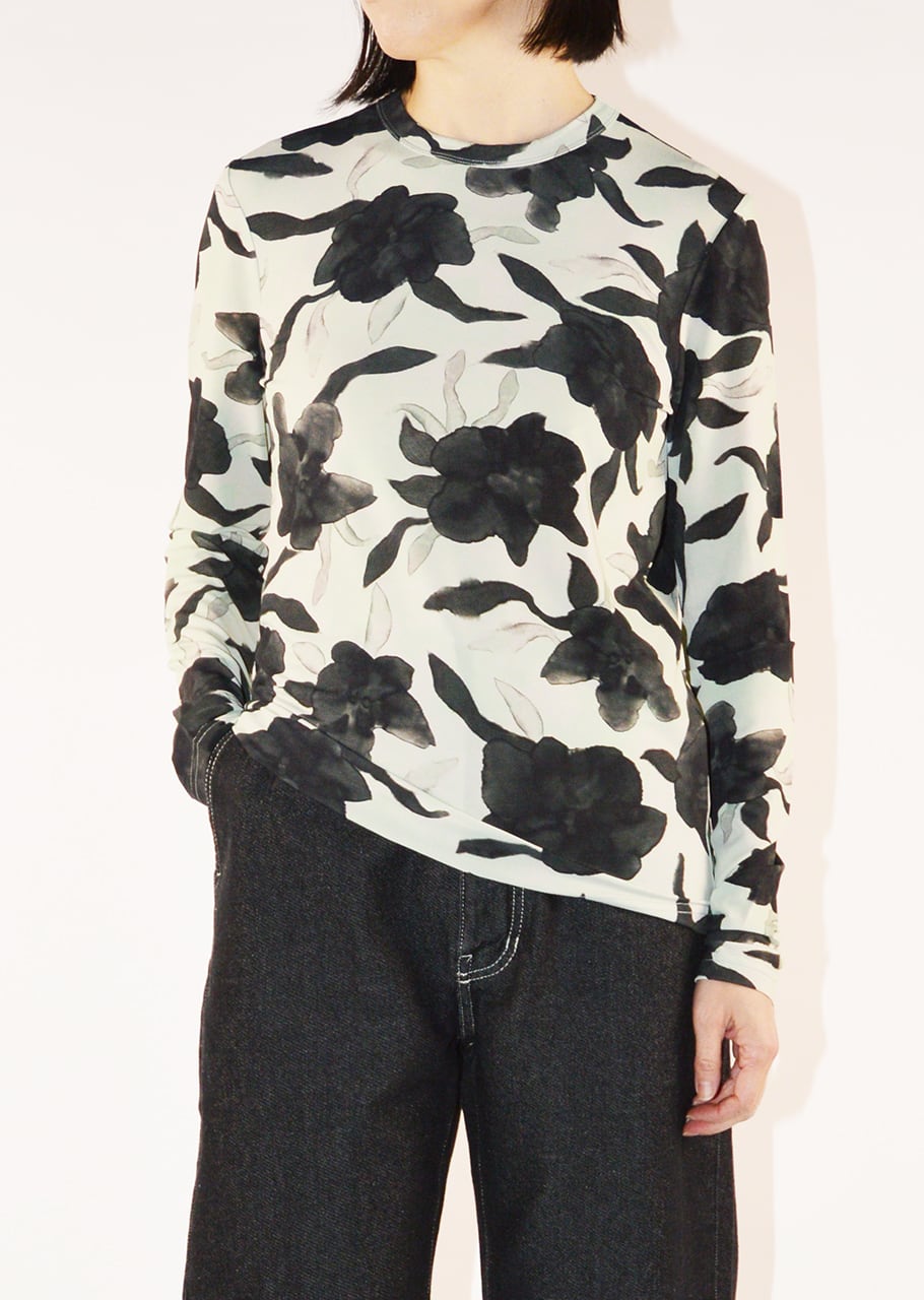 ブランドオリジナルのフラワープリントを施したロングスリーブのカットソー。タイトなシルエットで、着こなしにシャープな表情をプラス。インナーにもメインにも活躍すること間違いなしのアイテムです。